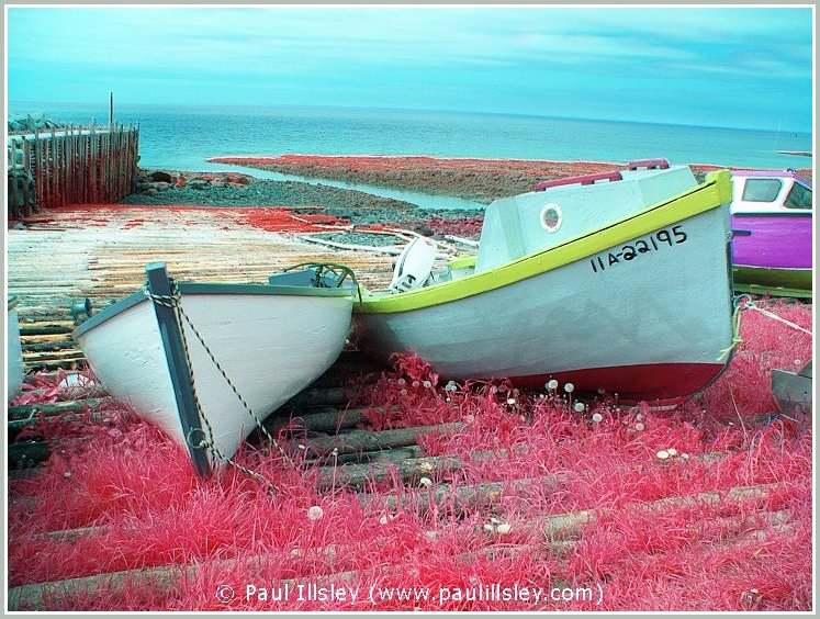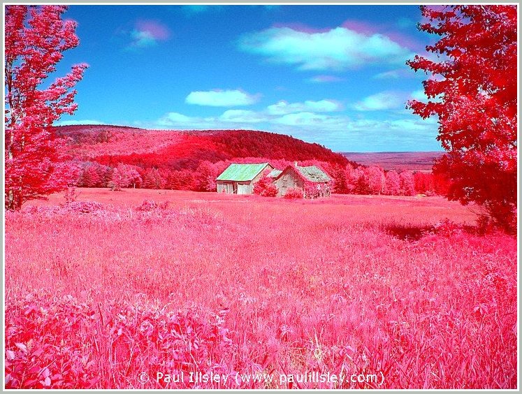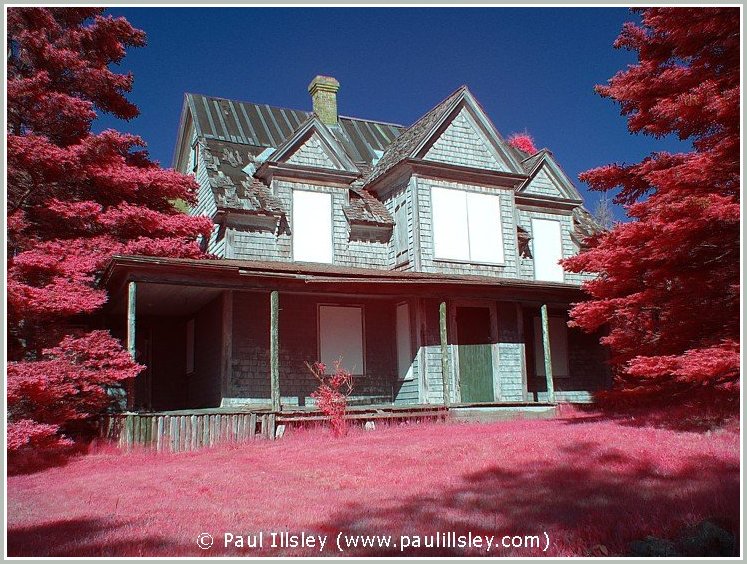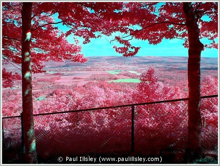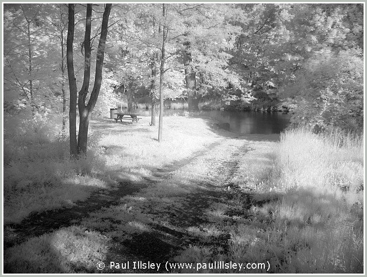Most digital cameras incorporate an infrared blocking filter in front of their sensor to remove this longer wavelength, so not all cameras can be used for recording this hidden world. Because infrared wavelengths are longer than visible light they also bend at a different angle when passing through the lense so we must readjust the focusing when shooting infrared images (focus closer than normal). A special filter is used to block all visible light and only allow the longer near infrared wavelengths to be recorded.