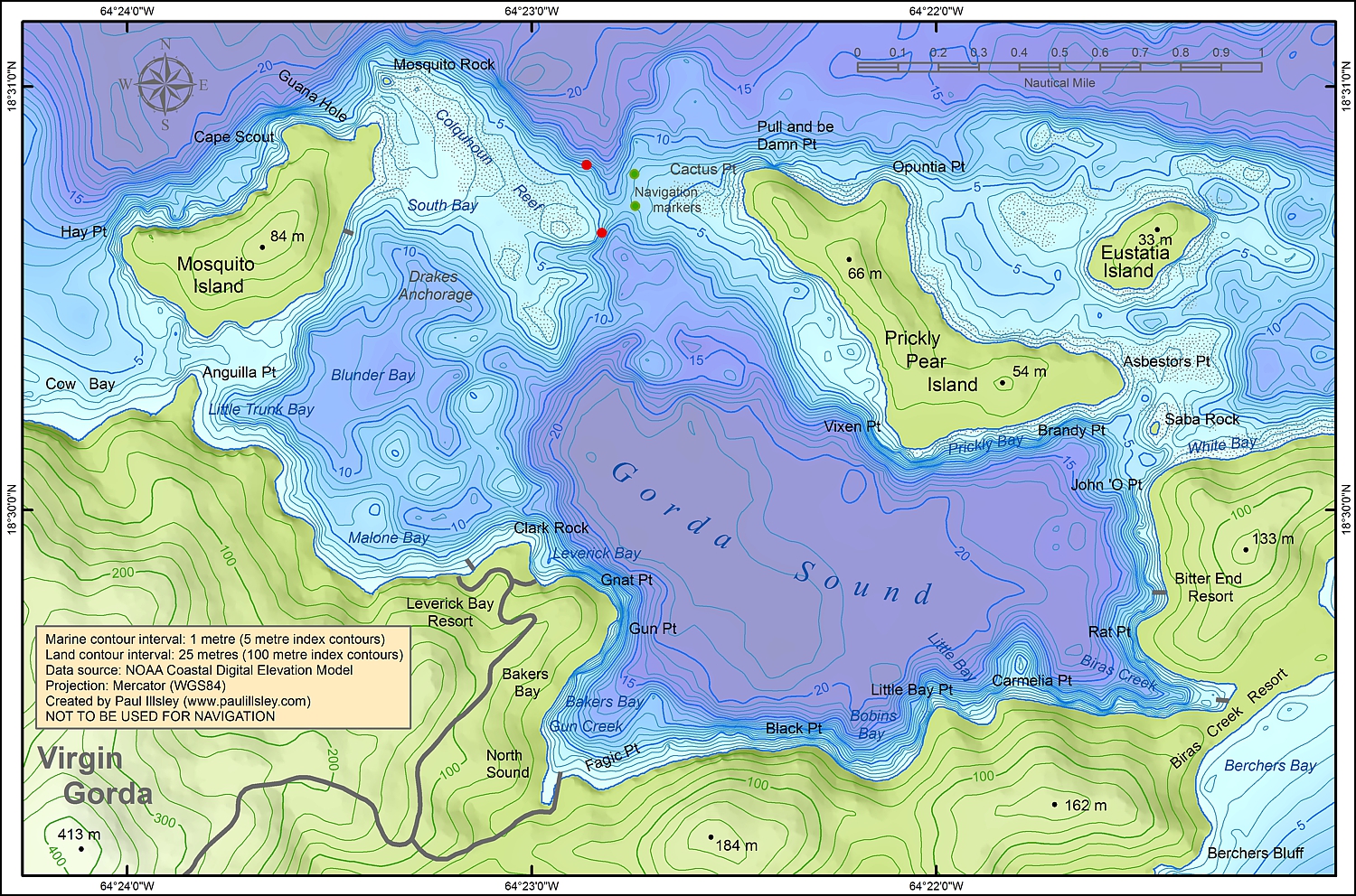 British Virgin Islands (BVI) Gorda Sound (North Sound) Bathymetry map