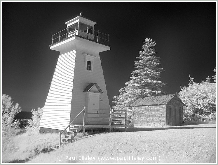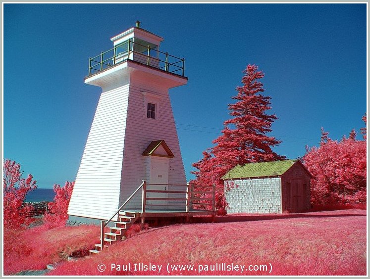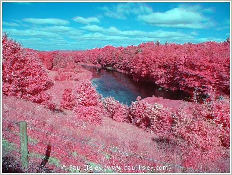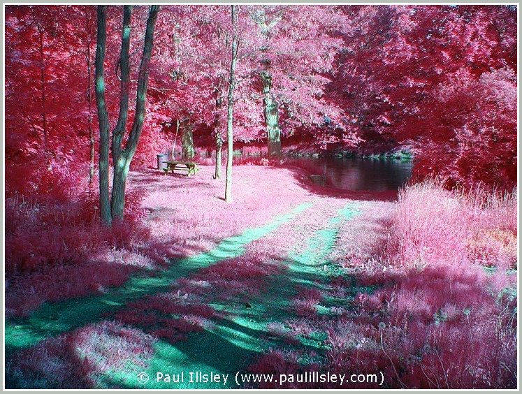 Most digital cameras incorporate an infrared blocking filter in front of their sensor to remove this longer wavelength, so not all cameras can be used for recording this hidden world. Because infrared wavelengths are longer than visible light they also bend at a different angle when passing through the lense so we must readjust the focusing when shooting infrared images (focus closer than normal). A special filter is used to block all visible light and only allow the longer near infrared wavelengths to be recorded.