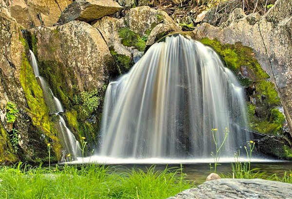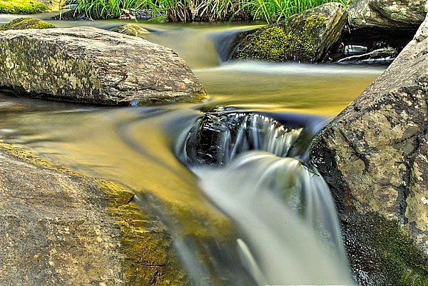 Use a polarizing filter to help remove reflections from wet surfaces and increase saturation in the foliage or surrounding vegetation. This polarizing filter will also decrease the amount of light reaching the sensor and increase the length of your exposure. If you want even longer exposures on bright days you can use a neutral density filter which will decrease the amount of light reaching the sensor substantially.